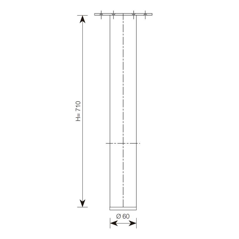 Perna de alumínio redonda de 60 mm de diâmetro para penínsulas de cozinha. Disponível em 4 acabamentos, cromado brilhante, inox, branco mate ou preto mate.