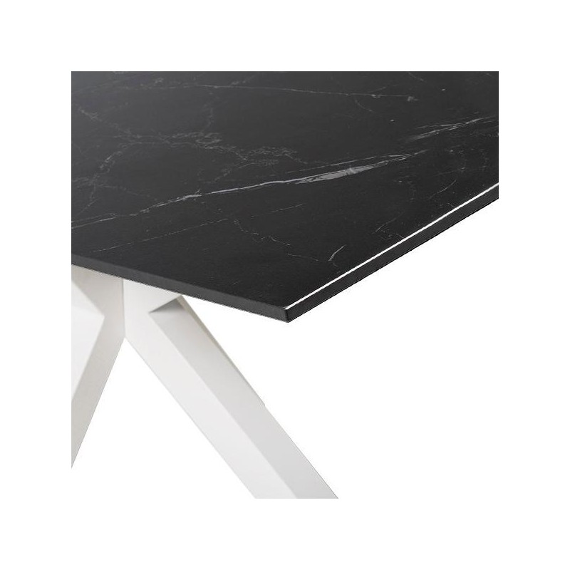 Mesa JOYCE 140 preto/branco: durabilidade, estética e funcionalidade em um móvel com tampo porcelânico e vidro temperado, ideal para qualquer espaço.