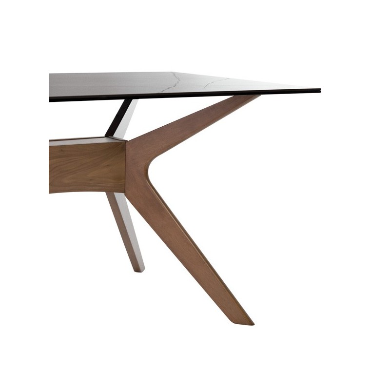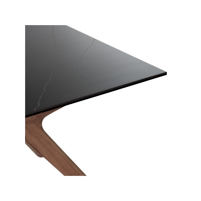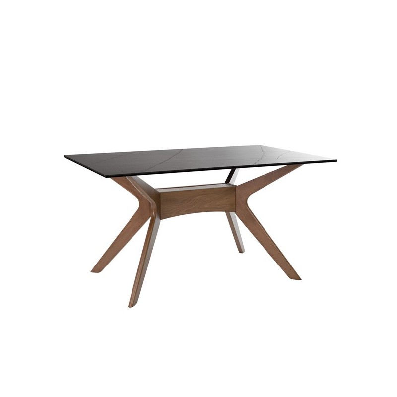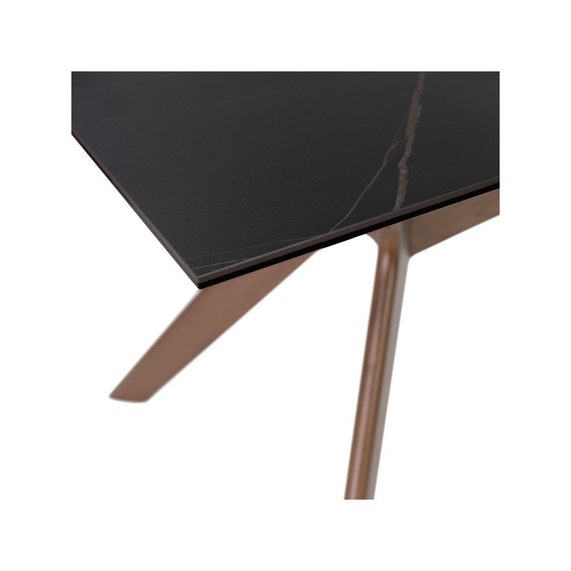 Descubra a elegância e durabilidade da mesa fixa ELOISE 140 em preto/nogal, um móvel de alta qualidade que combina perfeitamente funcionalidade e estilo. Com seu tampo de porcelanato de 5mm e vidro temperado de 8mm, esta mesa é resistente a riscos, calor, fogo e produtos químicos, garantindo uma superfície higiênica e fácil de limpar.