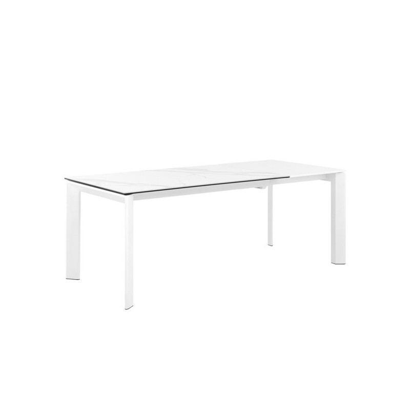 Descubra a elegante e funcional Mesa extensível TAMARA 160 branco/branco, um móvel de design moderno que combina perfeitamente o aço na cor branca com um tampo de porcelanato mármore creta. Esta mesa extensível de alta qualidade possui um tampo de porcelanato de 5mm e vidro temperado de 8mm, garantindo resistência a riscos, calor, fogo e produtos químicos, tornando-a uma superfície higiênica e durável.