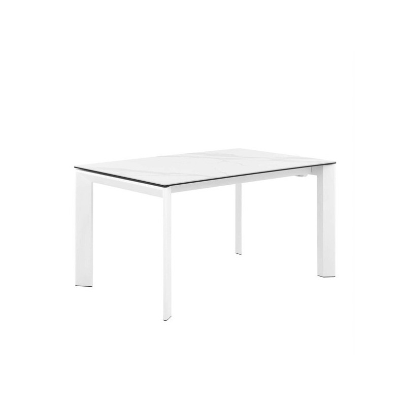 Descubra a nossa mesa extensível PORCELÂNICO EXTENSÍVEIS, modelo LISA 140 em elegante cor branca. Com um design moderno e funcional, esta mesa extensível de aço conta com um tampo de porcelânico mármore creta de 5mm de espessura e vidro temperado de 8mm. As pernas de DM lacado a cor complementam seu estilo único.
