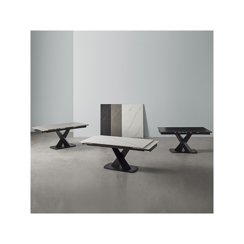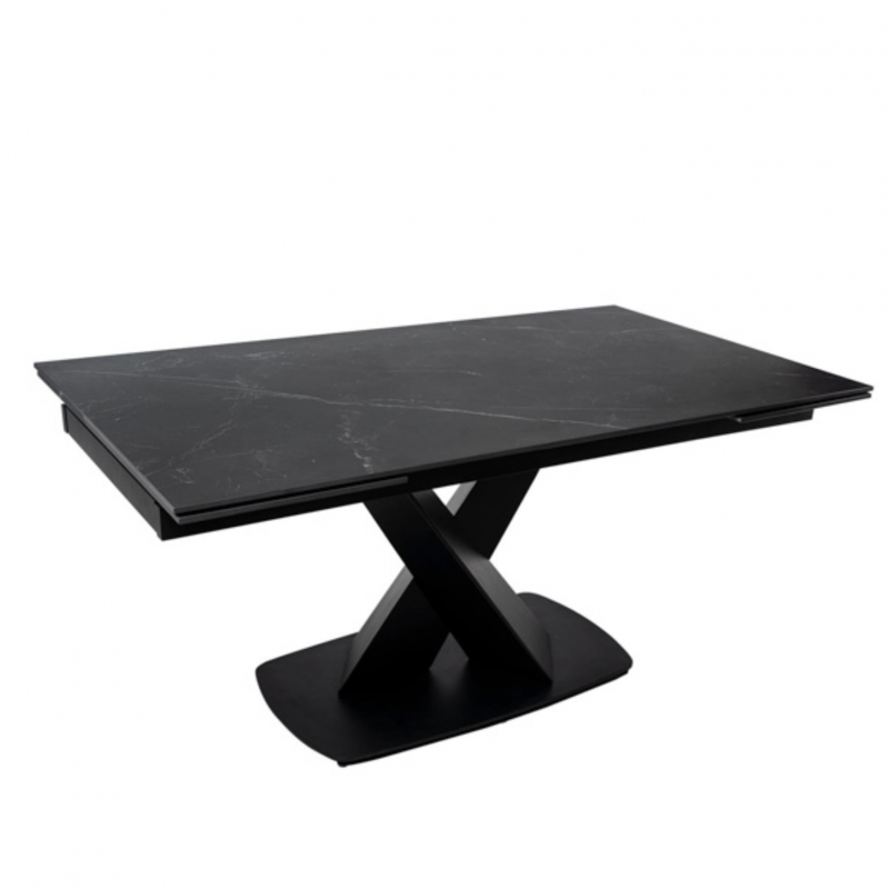 Mesa extensível VALERI 160 em preto/preto. Porcelânico resistente, fácil de limpar. Medidas: 160x90 cm, extensível a 200-240 cm. Estilo, qualidade e funcionalidade.