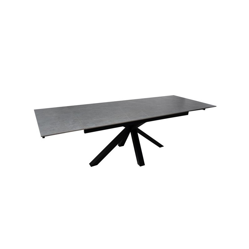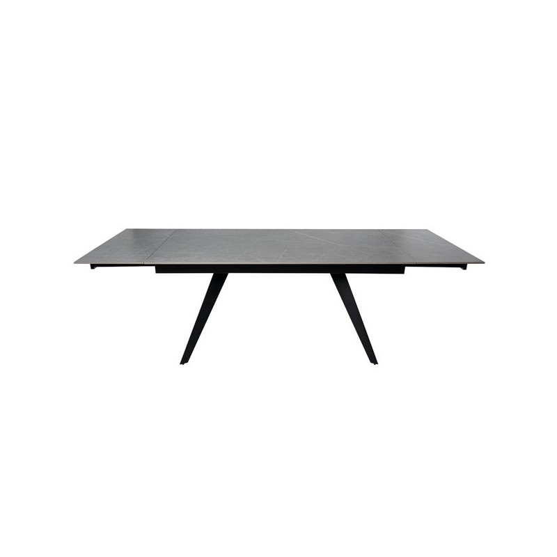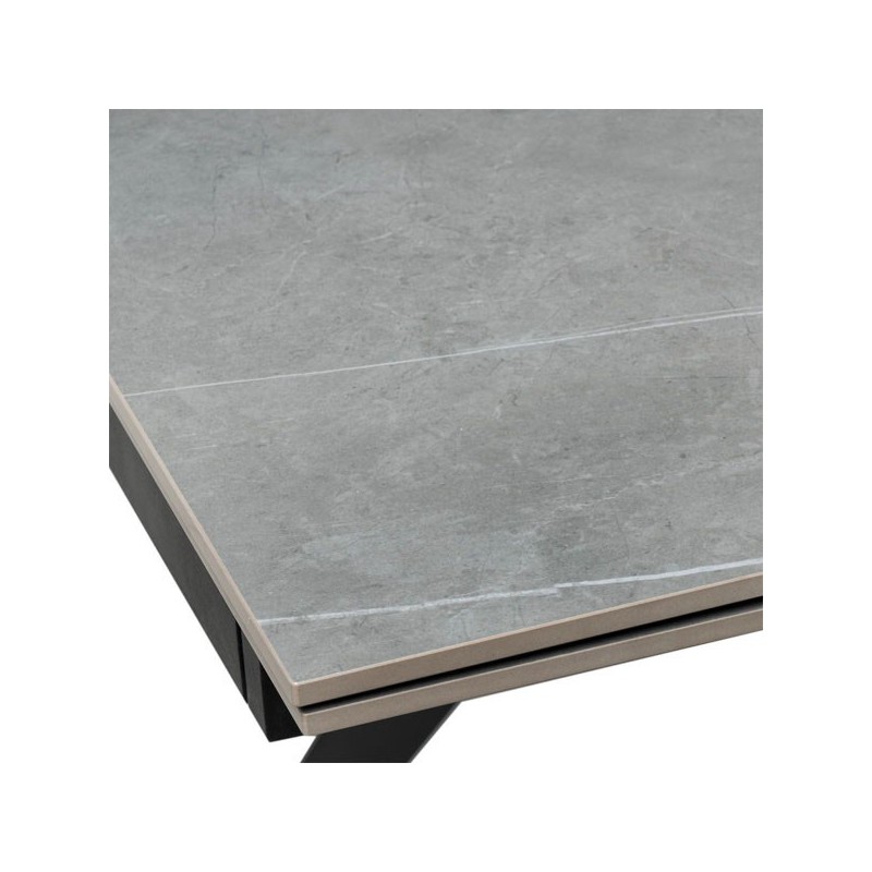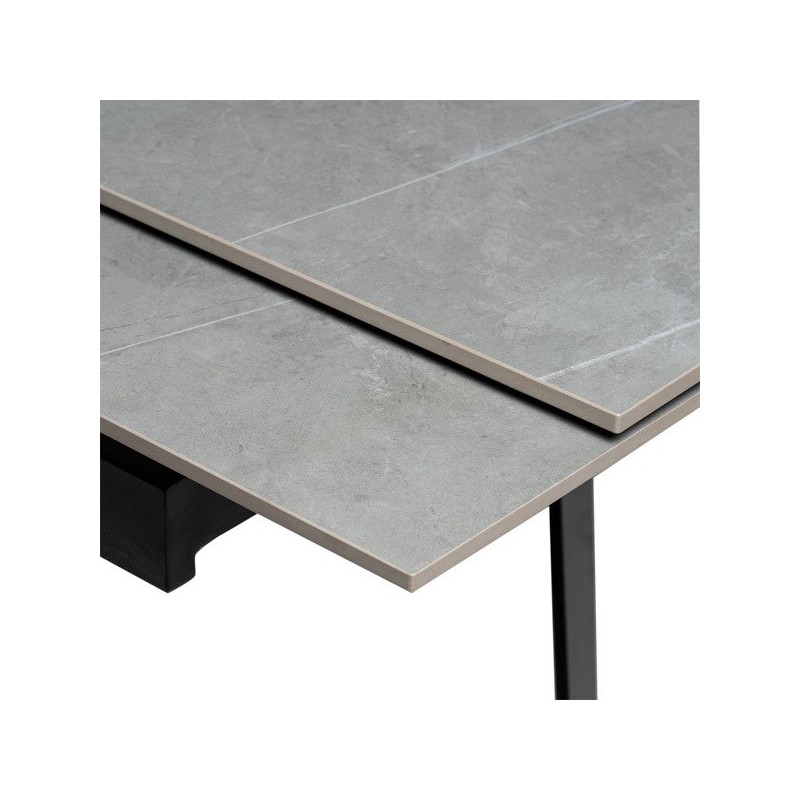 Descubra a elegante e funcional Mesa extensível KELLY 160 cinza/preto, um móvel de design moderno que combina perfeitamente o porcelanato maciço na cor cinza com sólidas pernas de metal em preto. Ideal para se adaptar às suas necessidades de espaço, esta mesa extensível possui um tampo de 10mm de porcelanato que a torna resistente a riscos, calor, fogo, produtos químicos e muito mais.
