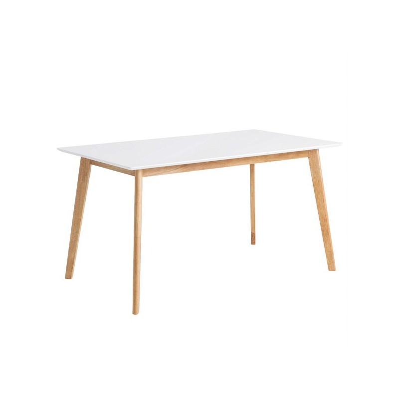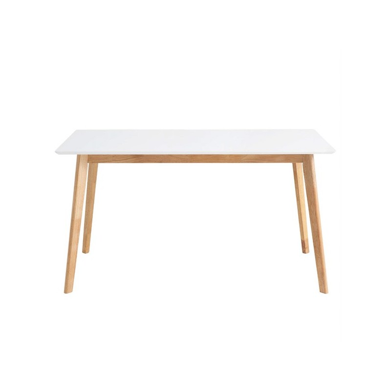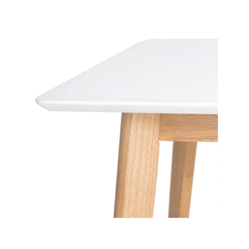 Descubra a mesa fixa ALICE 120 branco/carvalho, um elegante móvel de madeira que trará frescor e leveza à sua cozinha ou sala de jantar. Com um design simples de linhas retas, essa mesa retangular de 120x80cm se destaca por suas pernas de madeira de borracha e seu tampo laqueado em branco de 20mm de espessura.