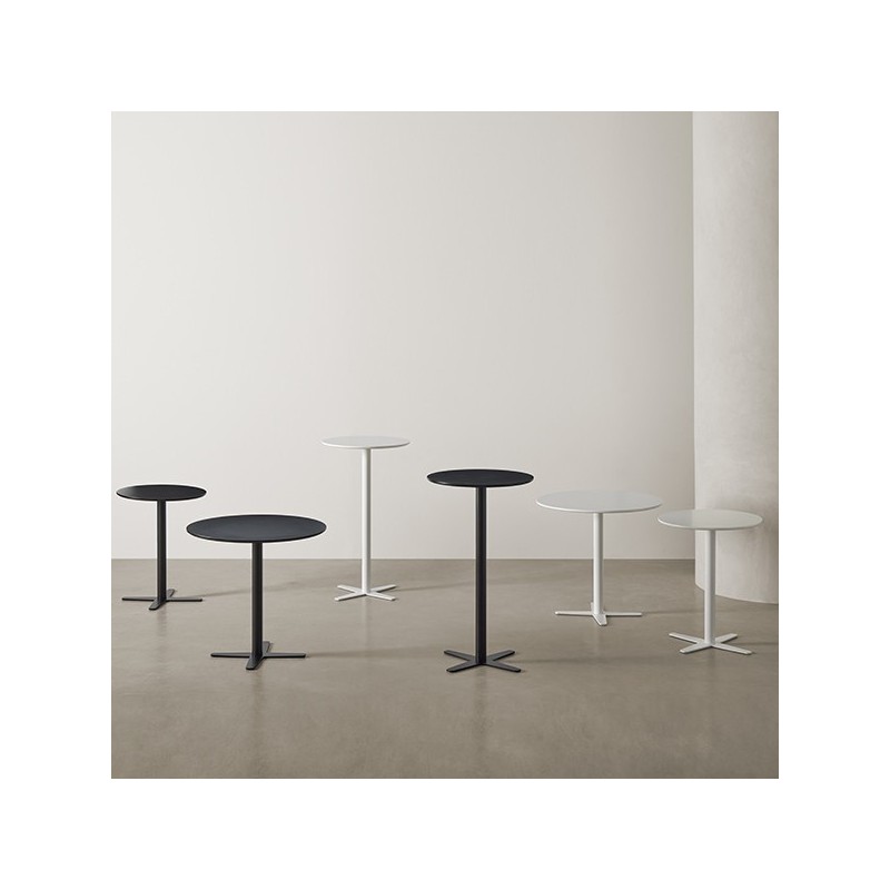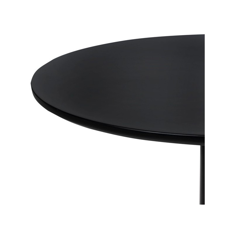 Descubra a elegante mesa fixa KALAMI preto, um móvel de design moderno e sofisticado que se adapta a qualquer espaço. Com seu tampo redondo de MDF laqueado de ø 80 cm e sua resistente perna central de metal, esta mesa é perfeita para criar um ambiente acolhedor e funcional na sua casa ou escritório.