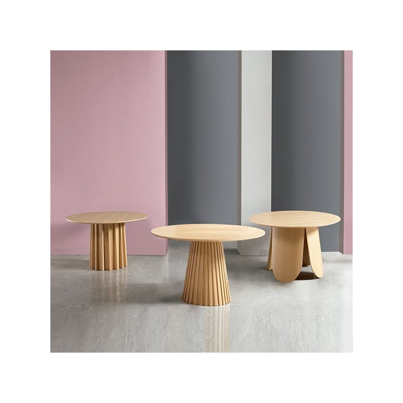 Descubra a elegante mesa FATIMA de MADEIRA FIXA: design moderno com tampo de folha de carvalho e pés do mesmo material. Qualidade, resistência e estilo.