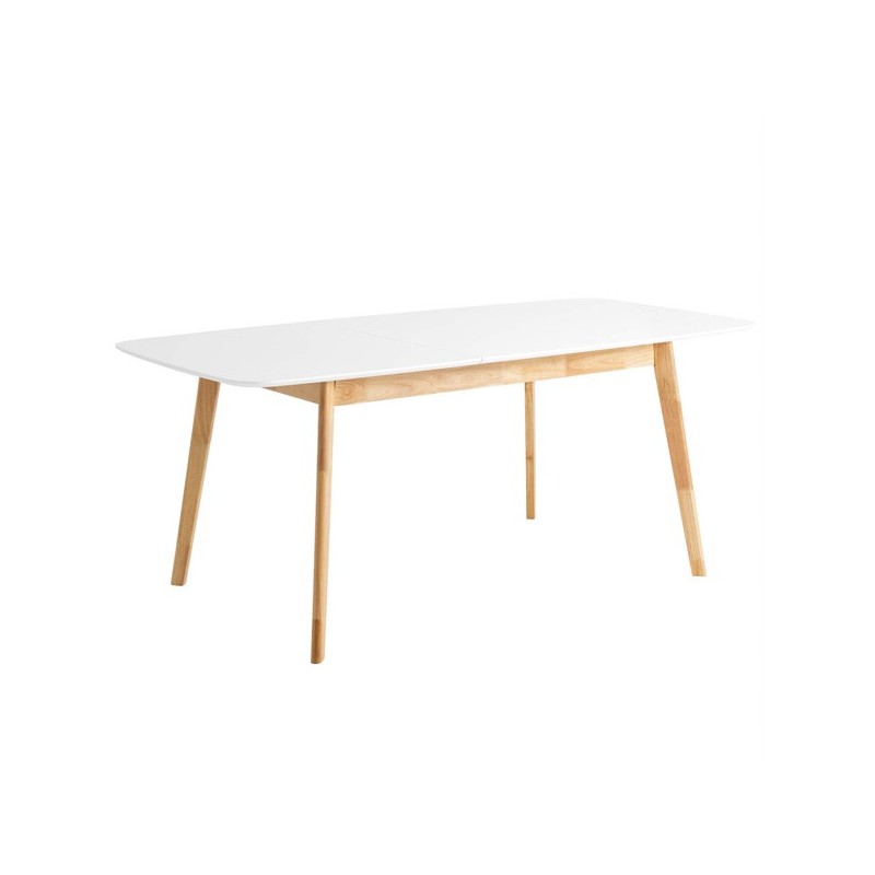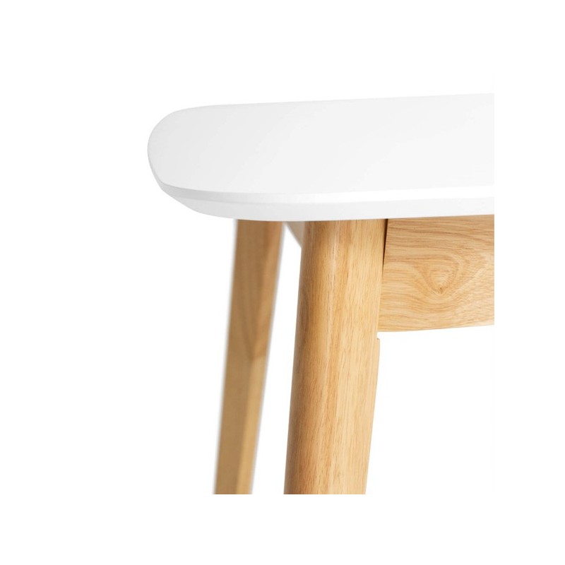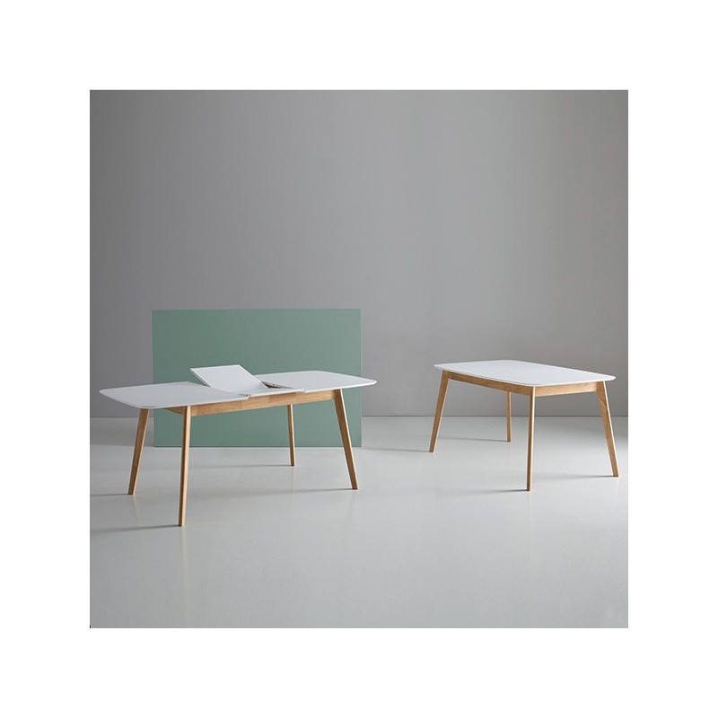 Descubra a versatilidade e elegância da mesa extensível ENMA 120 branco/carvalho, um móvel funcional e moderno que se adapta a qualquer espaço. Com suas medidas de 120x80 cm, esta mesa de jantar é perfeita para cozinhas e salas de jantar de estilo nórdico, trazendo um toque de frescor e luminosidade graças ao seu tampo lacado em branco e pernas de madeira de carvalho.