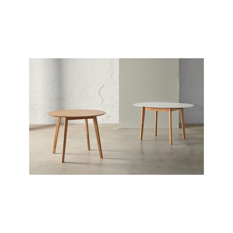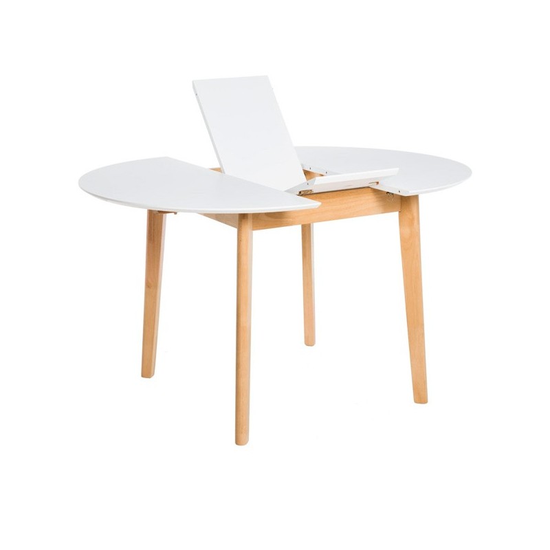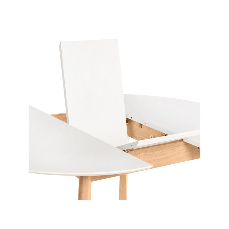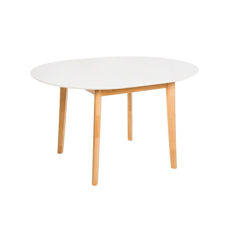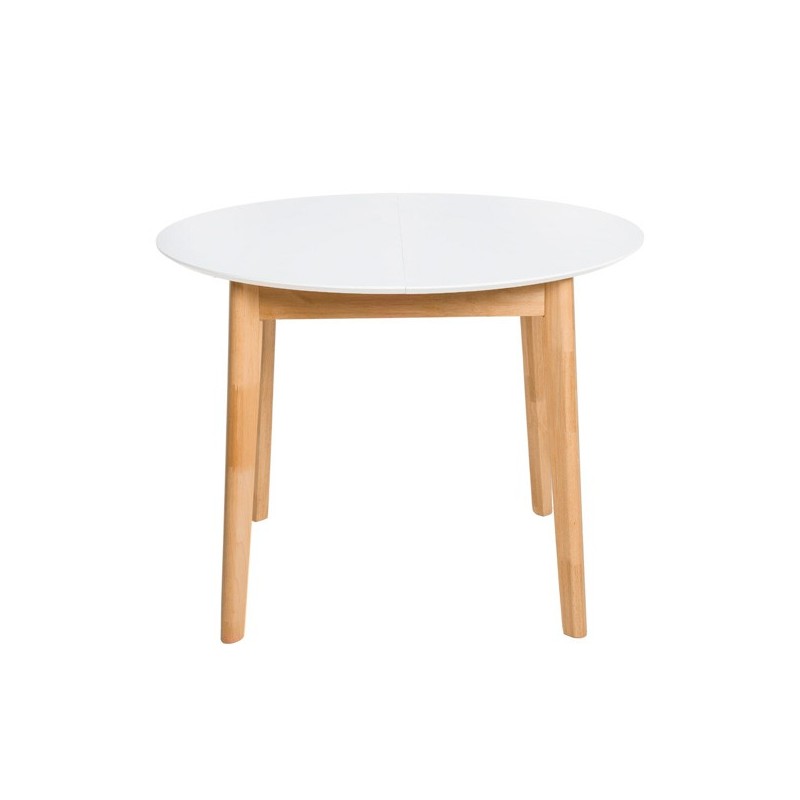 Descubra a elegante Mesa extensível LIANA 100 em branco e carvalho, um móvel versátil e funcional que se adapta às suas necessidades de espaço. Com um diâmetro de 100 cm que se estende até 130 cm, esta mesa redonda é perfeita para reuniões familiares ou jantares com amigos. Seu tampo de MDF laqueado em branco oferece um toque moderno e sofisticado, enquanto suas pernas de madeira de seringueira garantem resistência e durabilidade.