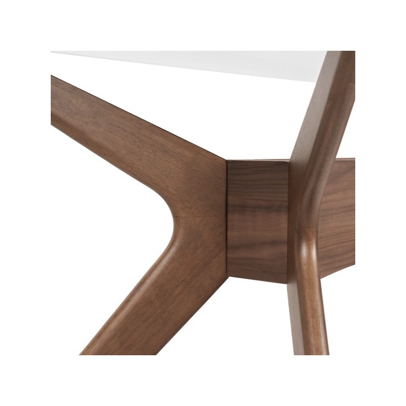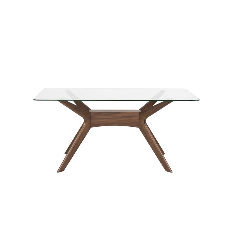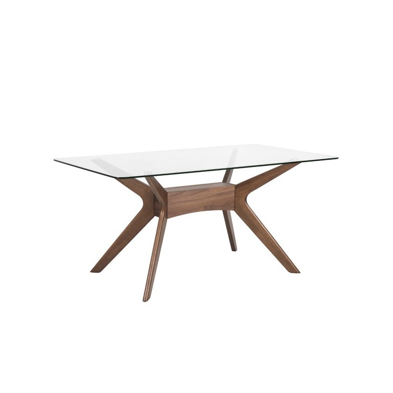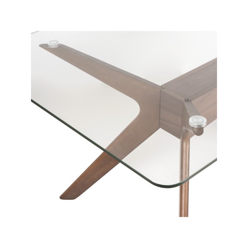 Mesa fixa DELLA 140 cristal/nogal: elegância e calor em um design único. Ideal para espaços médios. Transforme sua casa com sofisticação.