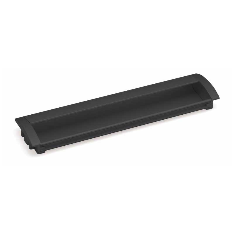 Puxador de alumínio acabamento preto fosco modelo 2414 para embutir nas portas de armários de cozinha.