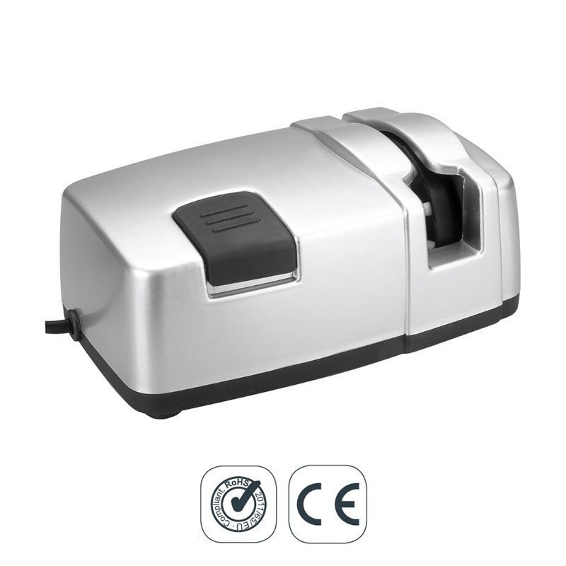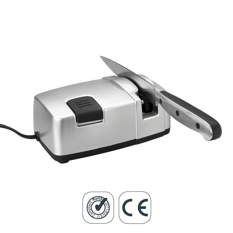 Afiador de facas elétrico de 60 W de potência exclusivamente para facas de lâmina lisa. Medidas: 16x11x7,5 cm