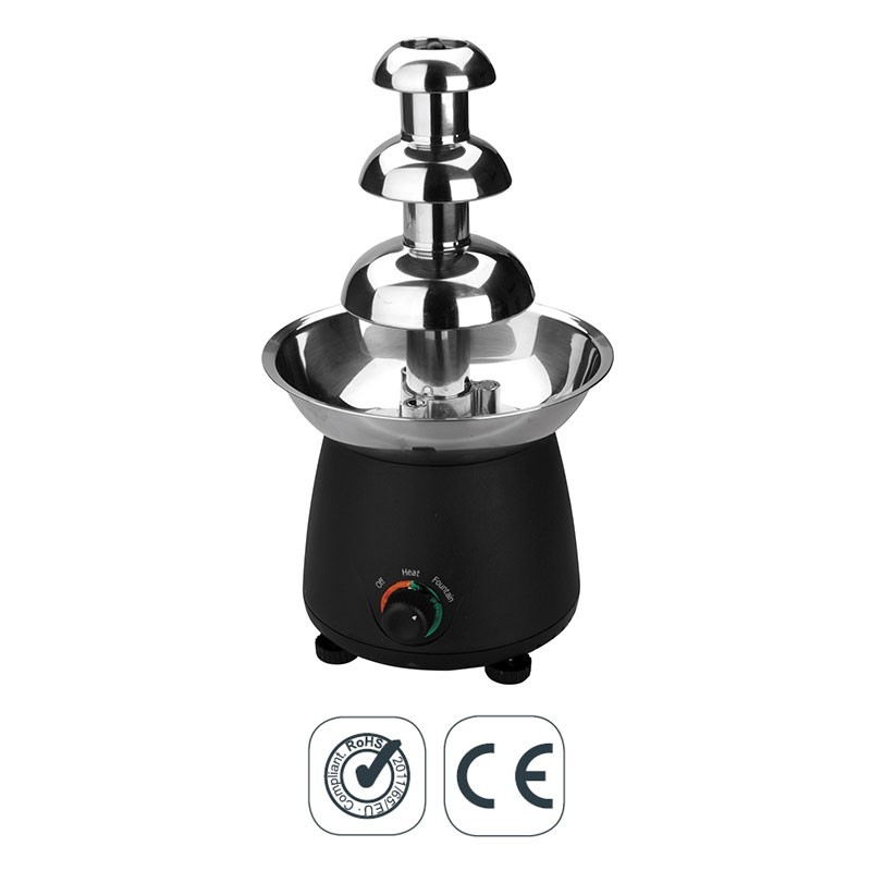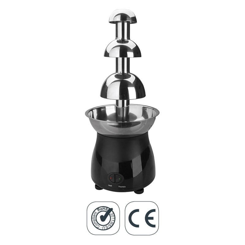 Fonte elétrica de chocolate derretido fabricada em aço inoxidável de alta qualidade e base de ABS. Disponível em 2 tamanhos.