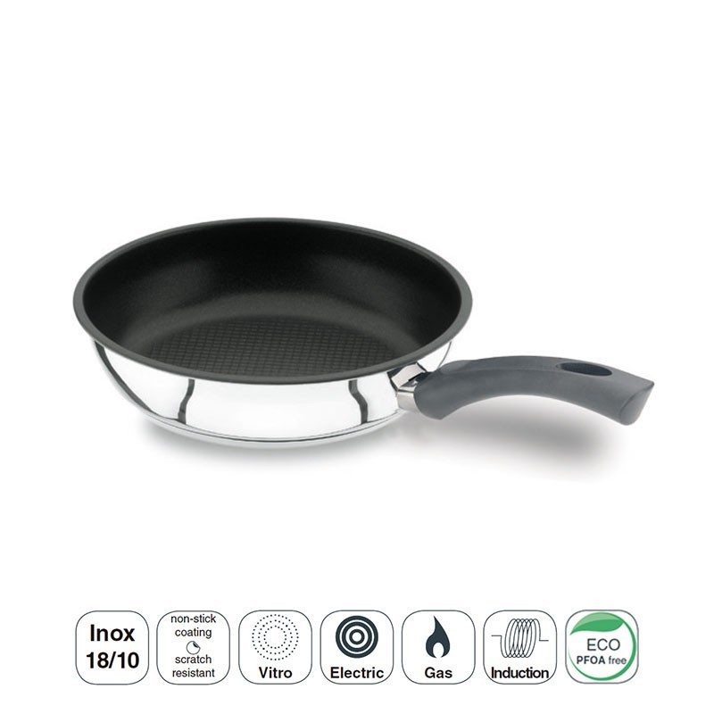 Frigideira antiaderente Home em aço inoxidável 18/10 de grande qualidade e resistência com revestimento tricamadas ecológico, anti-risco e livre de PFOA.