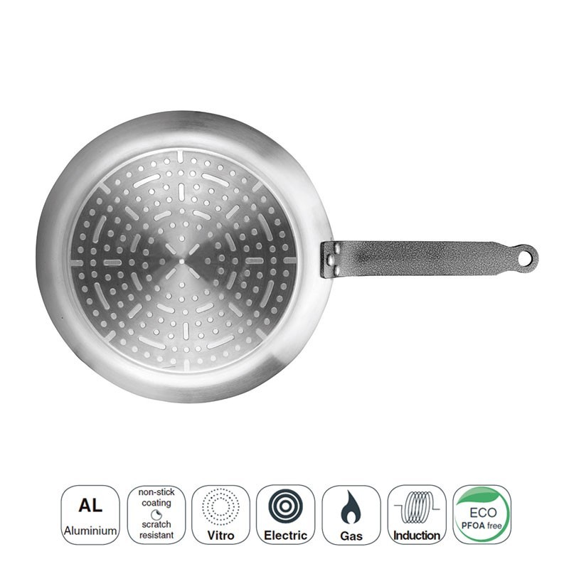 Boa difusão do calor, rápida e uniforme, com um design único para fritar saudável.