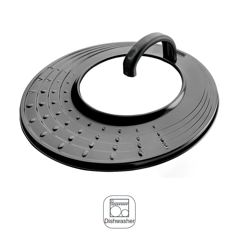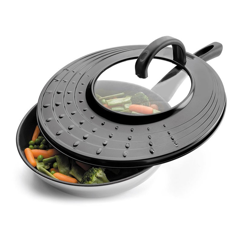 Tampa universal anti-salpicos fabricada em alumínio. Ideal para cobrir panelas durante o cozinhado. Apta para limpeza em máquina de lavar louça.