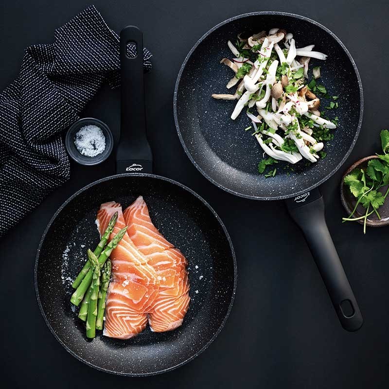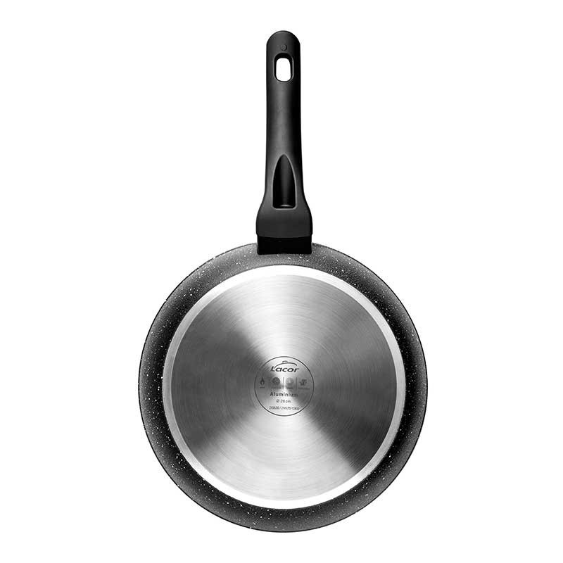 Frigideira gama Java Lacor fabricada em alumínio forjado com revestimento anti-aderente reforçado anti-riscos e plano de fundo full induction.