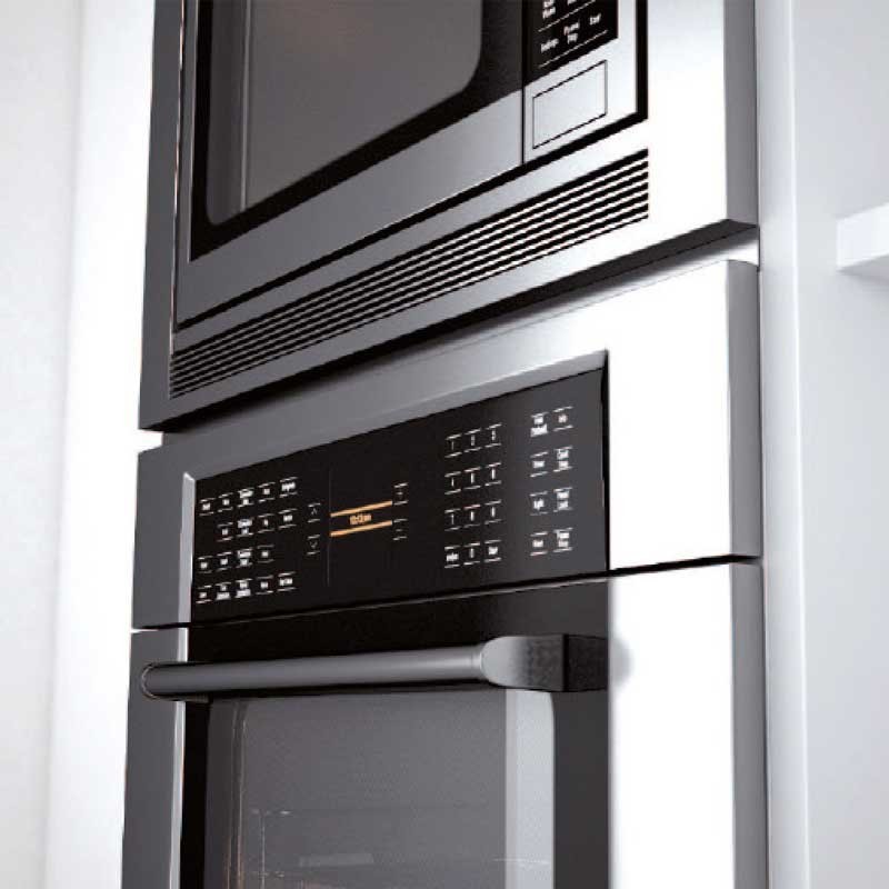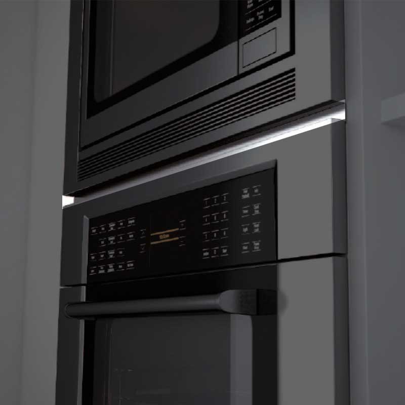 Perfil de aço inoxidável de 599 mm de comprimento para integração de forno e microondas em coluna.