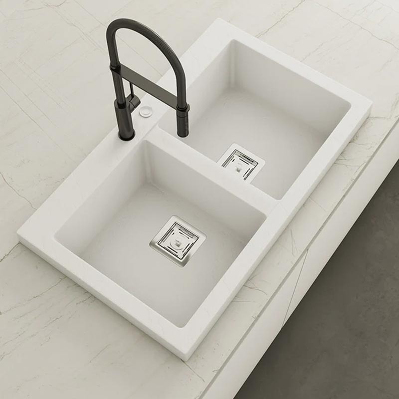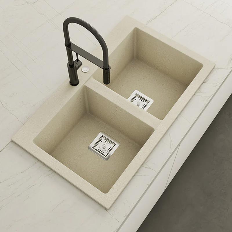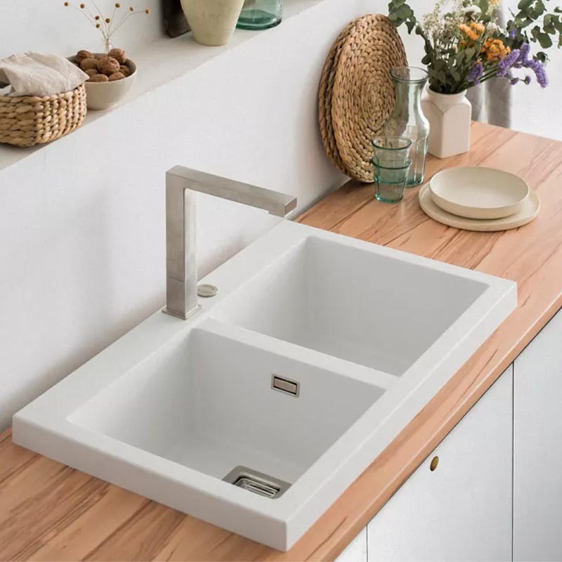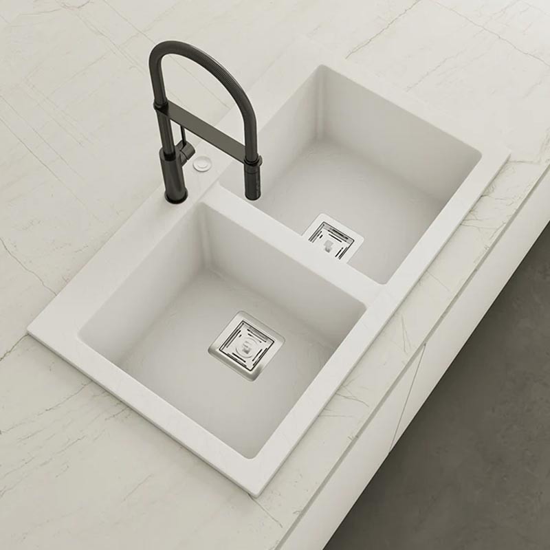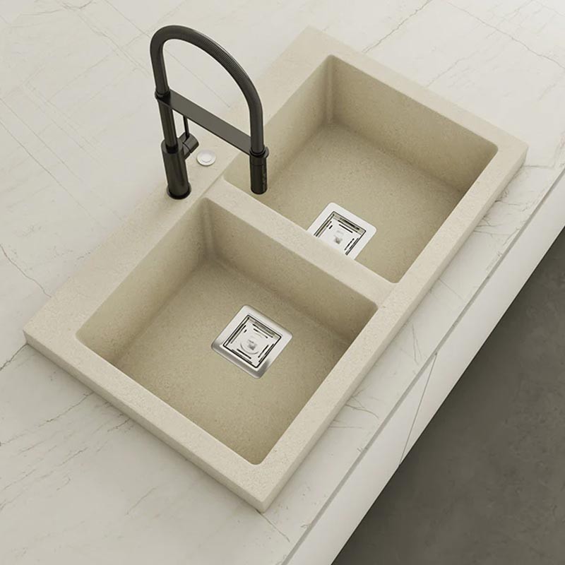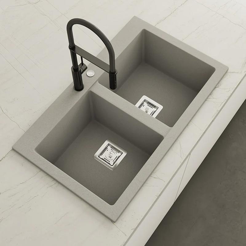 Fabricado pela Poalgi em seu material em massa Hekla®, esta pia de granito oferece uma ampla e confortável zona de trabalho resistente a fatores externos. Além disso, sua colocação sobre bancada oferece duas alturas diferentes para se adaptar ao estilo da sua cozinha.