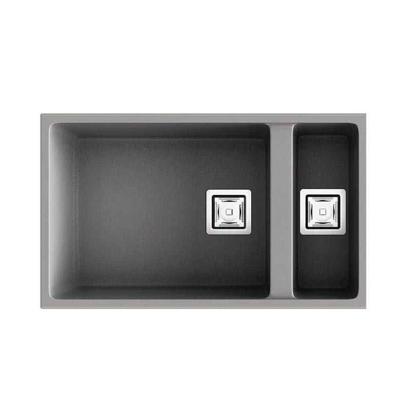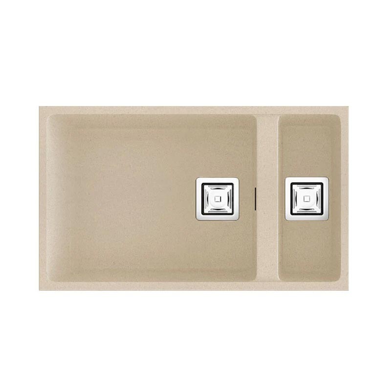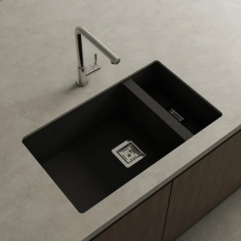 Pia de granito Hekla® modelo Zie 70 com uma cuba mais um escorredor de verduras acabamento mate projetada para instalação sob ou sobre a bancada em móveis de 80 cm no mínimo.