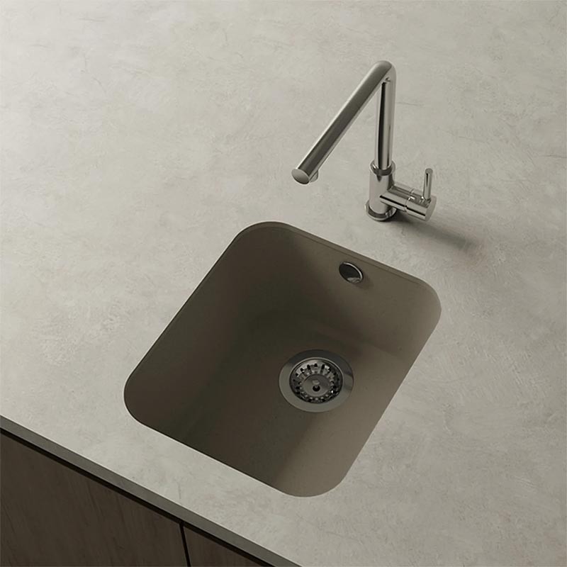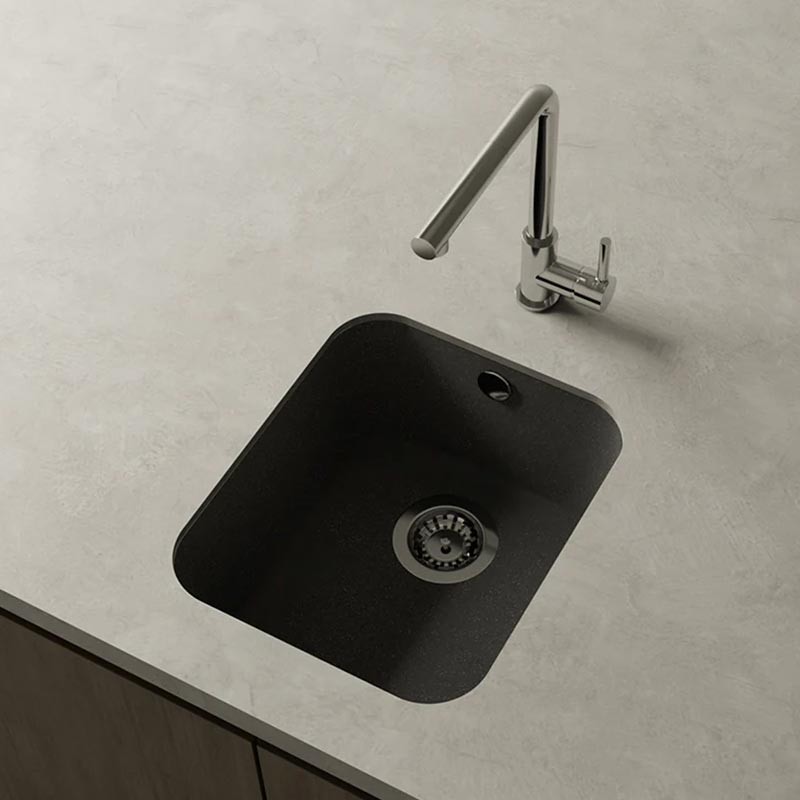 Fregador de granito Hekla® modelo Gandia acabamento fosco desenhado para instalação sob bancada ou sobre bancada em móveis a partir de 45 cm.