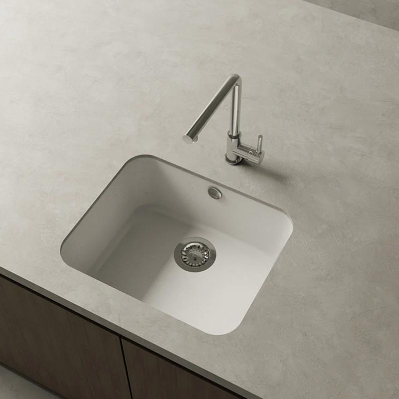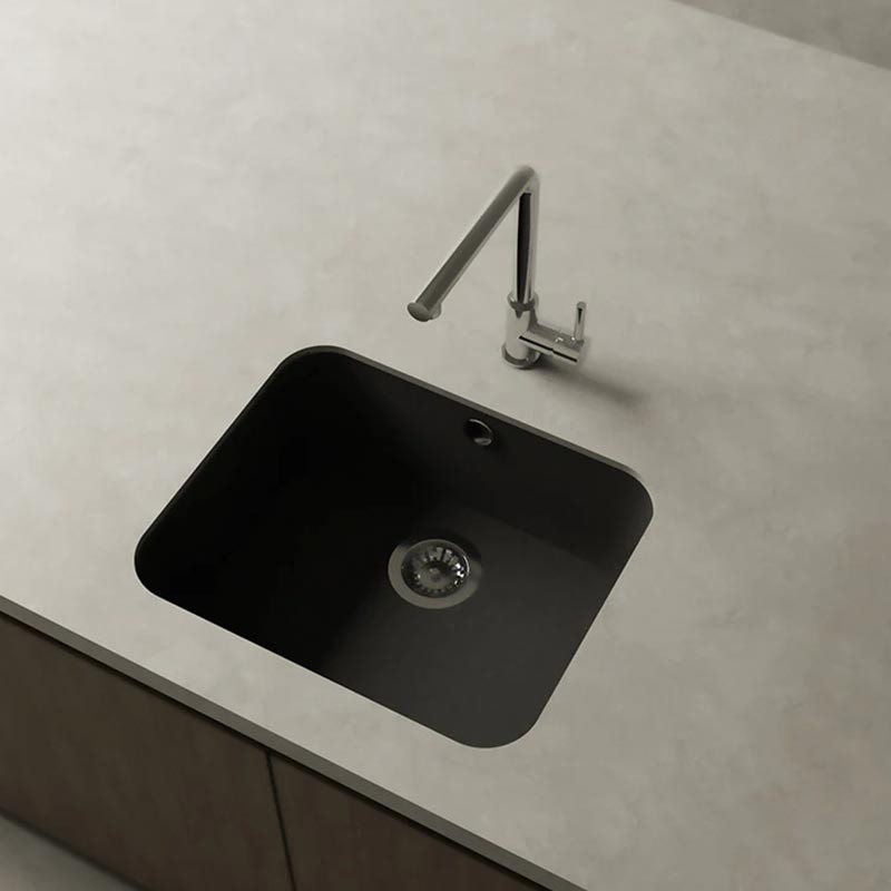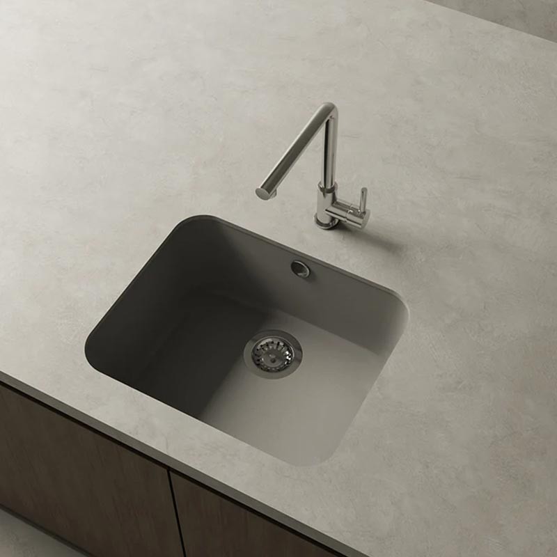 Fregadero de granito Hekla® modelo Gandia acabamento fosco projetado para instalação sob bancada ou sobre bancada em móveis a partir de 60 cm.