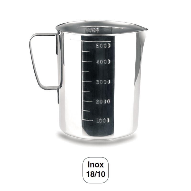 Jarro de medidas para fogão de 5 litros de capacidade, fabricada em aço inoxidável 18/10 de alta qualidade e excelente resistência à corrosão. Medida: 17 x 22,5 cm