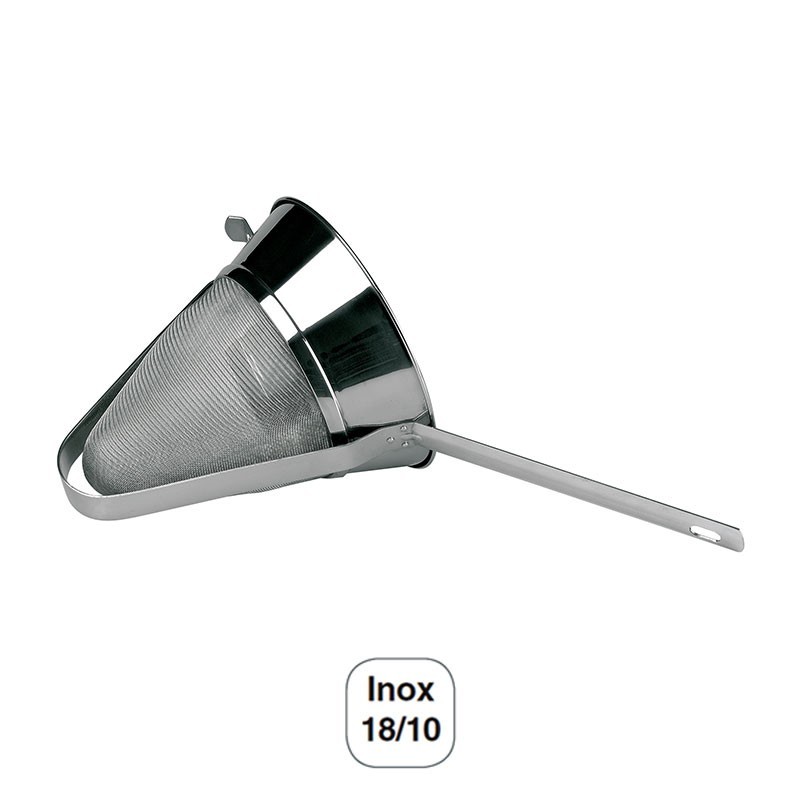 Peneira de malha com reforço fabricado em aço inoxidável 18/10 de alta qualidade que oferece excelente resistência à corrosão. Medida: 20x22 cm