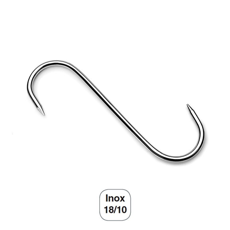 Conjunto de 6 ganchos com duas pontas para pendurar carne fabricados em aço inoxidável 18/10 de alta qualidade e excelente resistência à corrosão. Disponível em 2 tanaños.