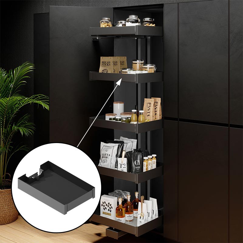 Coluna despenseiro extraível Titán Nova Flat fabricada em aço acabamento antracite com bases antiderrapantes, guias de extração total e fechamento amortecido.