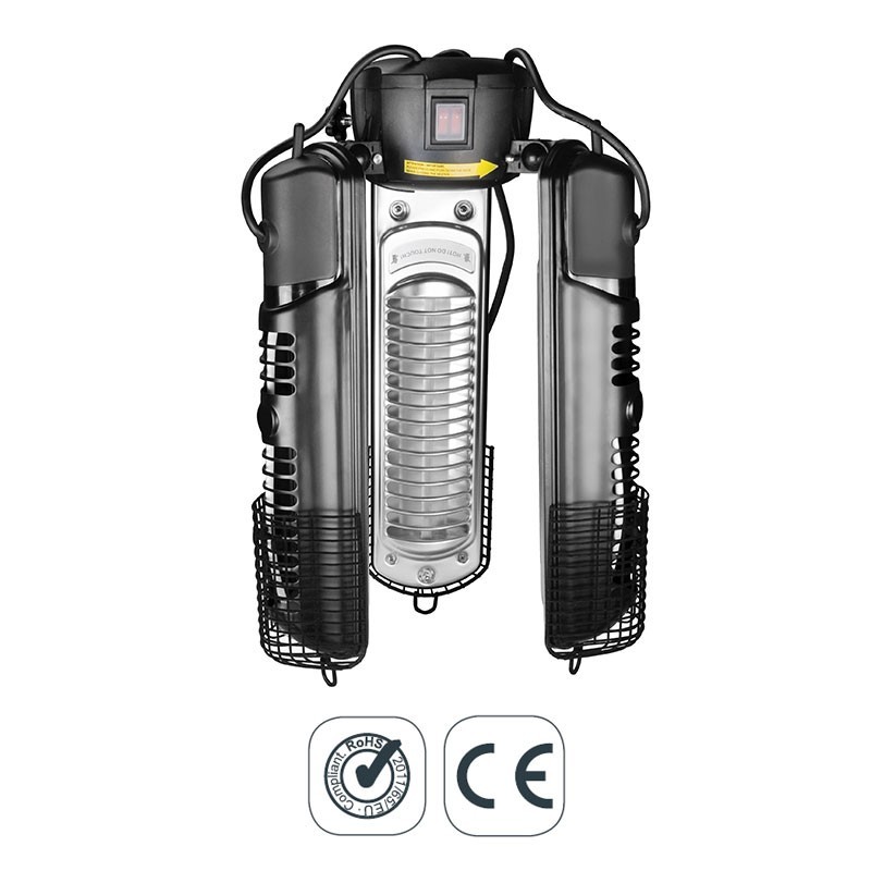 Aquecedor elétrico de teto ideal para terraços com 2000 W de potência e 3 braços de elevação/dobráveis com lâmpadas de halogéneo infravermelhas.