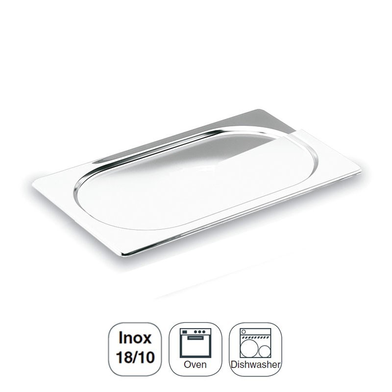 Tampa lisa para recipientes e bandejas Gastronorm para cozinhas profissionais, fabricada em aço inoxidável 18/10. Disponível em várias medidas.