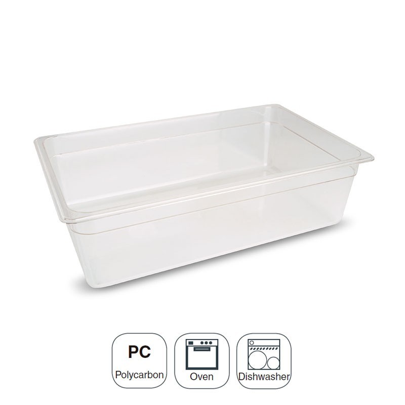 Balde tamanho GN 1/1 530x325 mm para cozinhas profissionais fabricada em policarbonato de alta qualidade leve e indeformável.