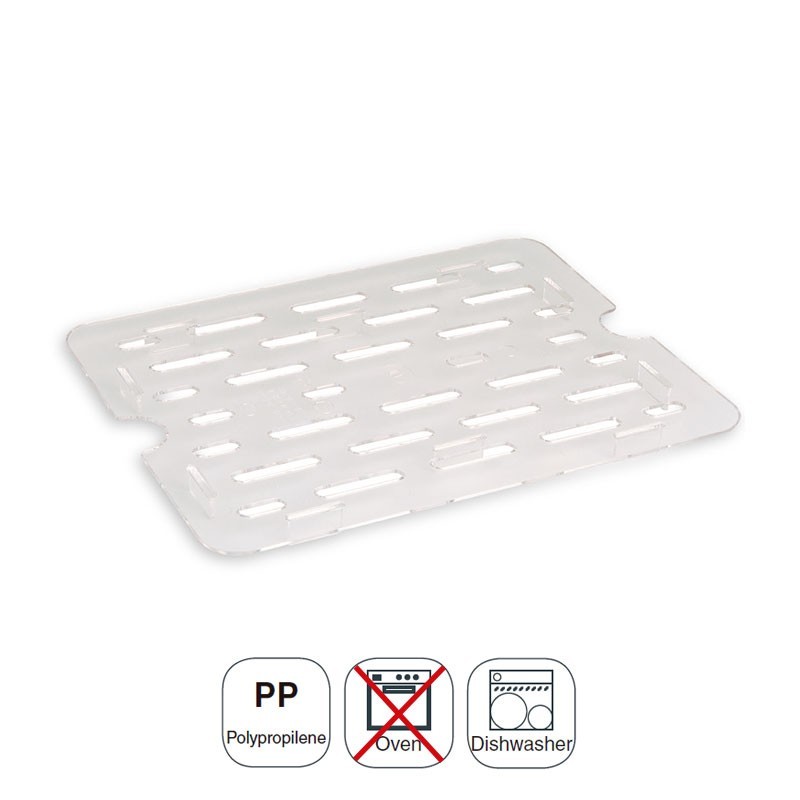 Duplo fundo perfurado para recipientes Gastronorm para cozinhas profissionais, e fabricado em polipropileno de alta qualidade, indeformável e leve. Disponível em várias medidas. Compatível apenas com cubetas de polipropileno.