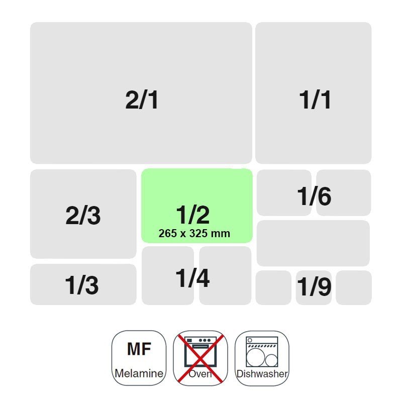 Balde tamanho GN 1/2 265x325 mm para cozinhas profissionais fabricada em resina sintética branca de alta qualidade e resistência.