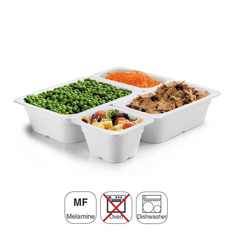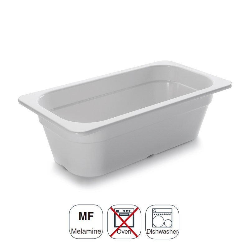 Balde tamanho GN 1/3 de 176x325 mm para cozinhas profissionais fabricada em resina sintética branca de alta qualidade e resistência.