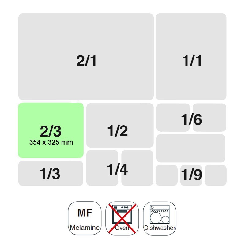 Balde tamanho GN 2/3 de 354x325 mm para cozinhas profissionais fabricada em resina sintética branca de alta qualidade e resistência.