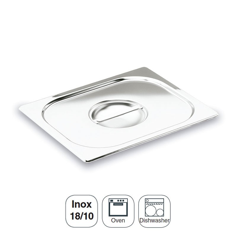Tampa para recipientes e bandejas Gastronorm para cozinhas profissionais, fabricada em aço inoxidável 18/10. Disponível em várias medidas.