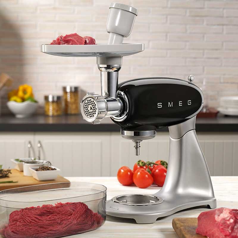 Acessório picador de carne compatível com os robôs de Cozinha Smeg 50's Style modelo SMF02 e SMF03. Dimensões: 170x80x150 mm.