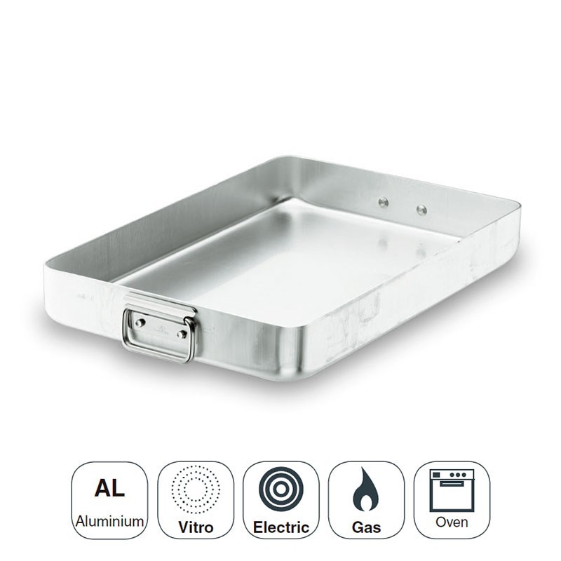 Rustidera com pegas de elevação para forno gama profissional modelo Chef Alumínio fabricada em alumínio puro de alta qualidade.