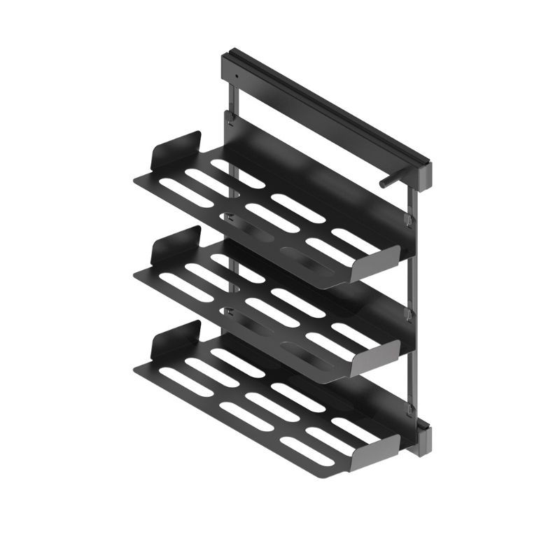 A estrutura extraível está disponível para instalação na mão direita ou esquerda do módulo do armário. Além disso, com capacidade para três cestas.
