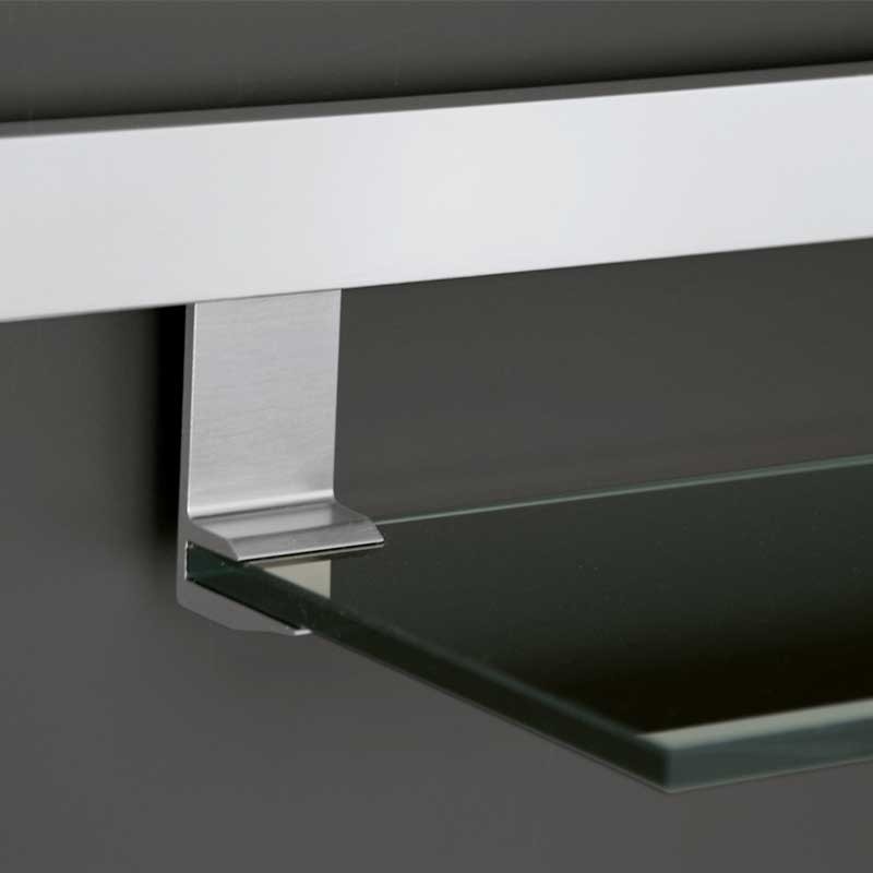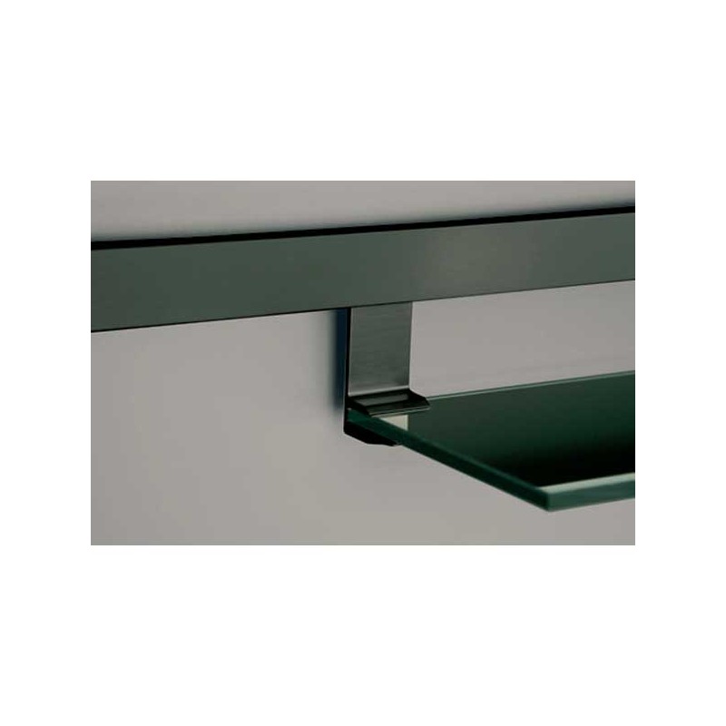 Prateleira de vidro para cozinha compatível com barra linero modelo Titan. Disponível com suporte em efeito inox ou preto. Profundidade de 160 mm. Comprimento a escolher.