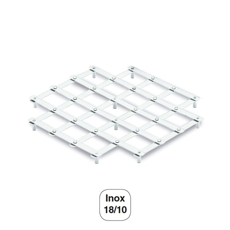 Base para tachos quadrado de 23 x 23 cm fabricado em aço inoxidável 18/10 de grande qualidade e resistência à corrosão.