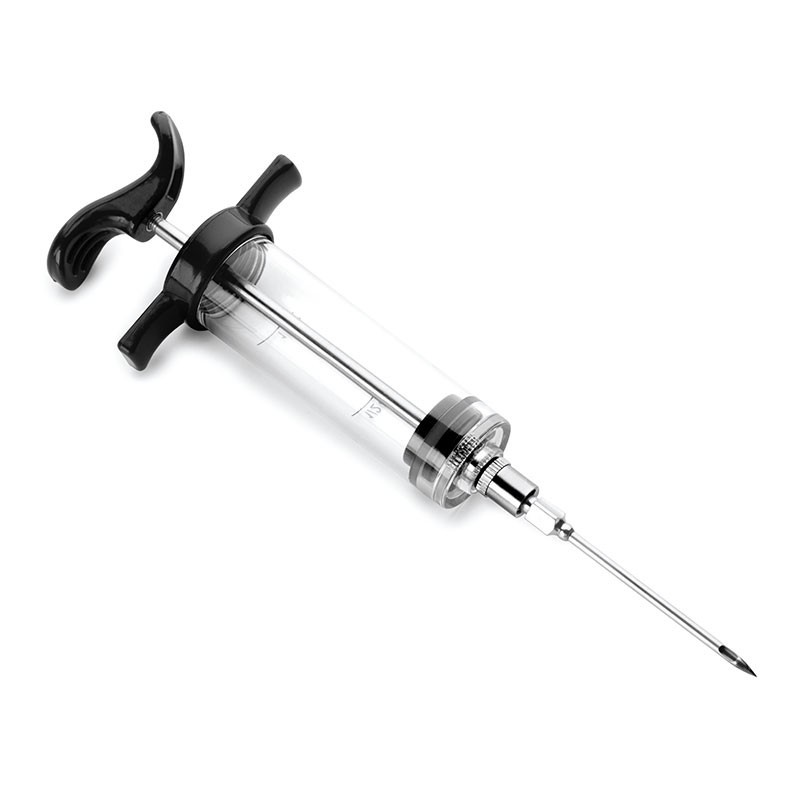 Seringa de 30 ml de capacidade para injetar molhos e especiarias, ou para extrair o molho e reduzi-la na frigideira.