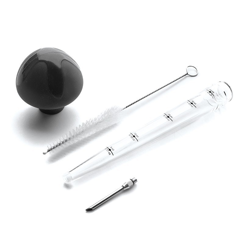 Pipeta de 40 ml de capacidade e 30 cm de comprimento para injetar molhos e especiarias, ou para extrair o molho e reduzi-la na frigideira.