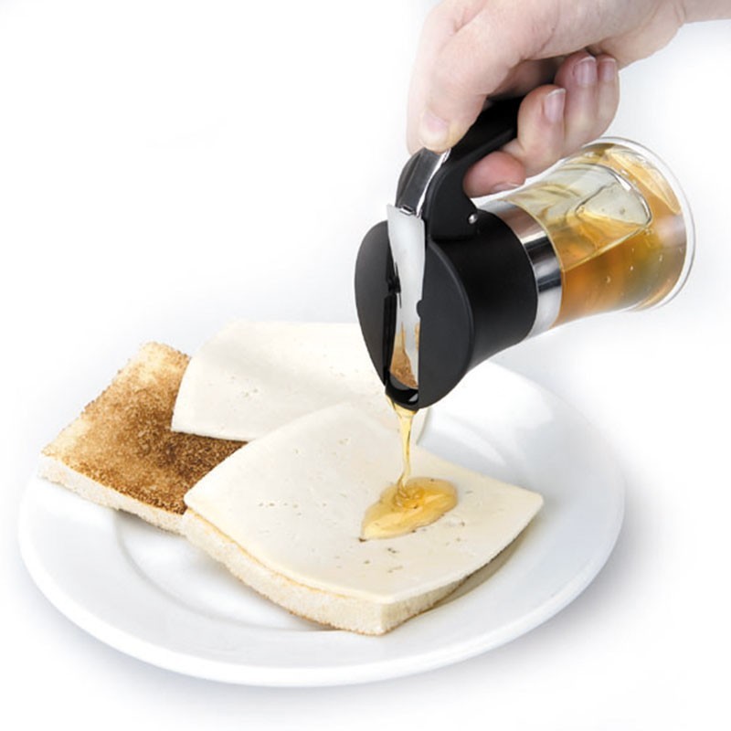 Distribuidor de mel fabricado em plástico livre de bisfenoles de 7 cm de diâmetro e 12,5 cm de altura, com tampa de polipropileno e aço inoxidável 18/10.