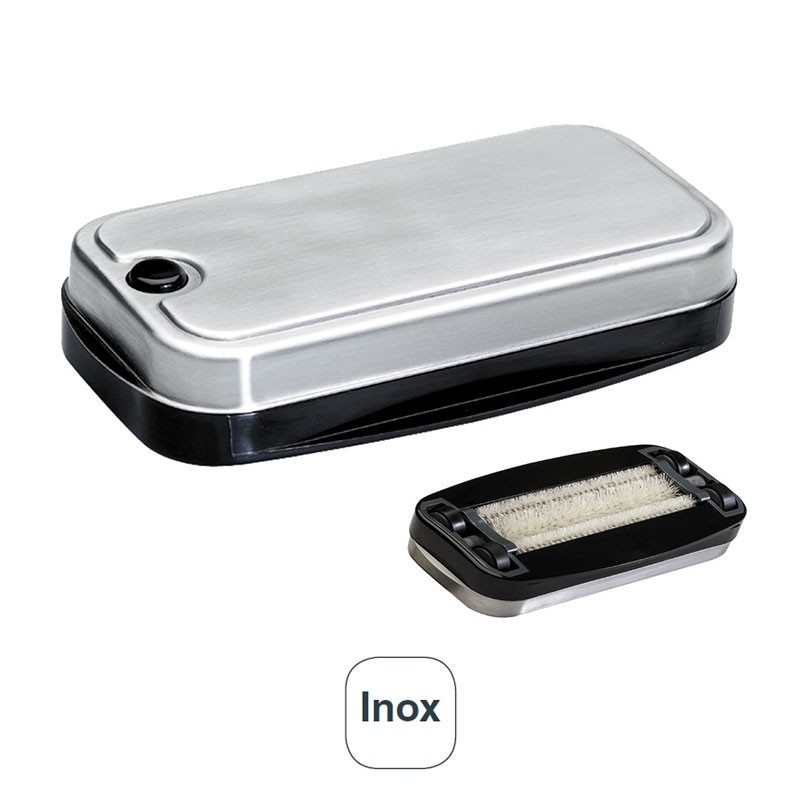 Escova para recolher as migalhas de pão da mesa facilmente fabricado em aço inoxidável. Medidas: 9,5x16,5x4 cm