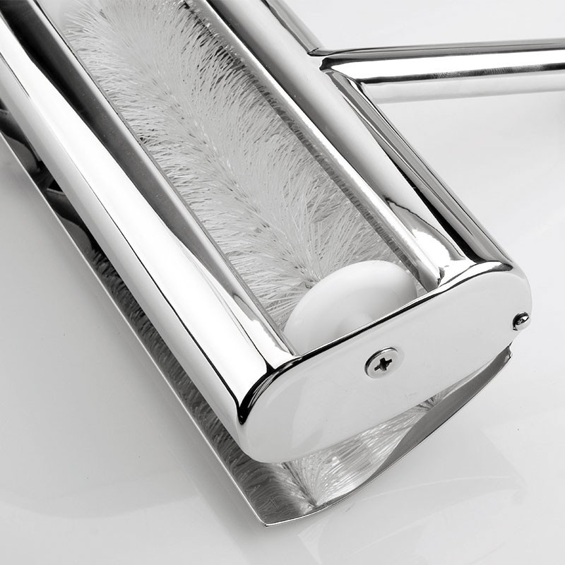 Escova pá migalhas com escova rotativa e punho fabricado em aço inoxidável de grande qualidade. Medidas: 14,5x17 cm