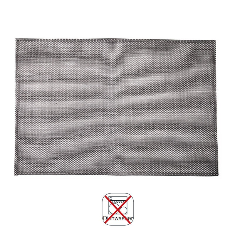 Individual de 45x30 cm modelo Biak feito com 75% de PVC e 25% poliéster na cor cinza.