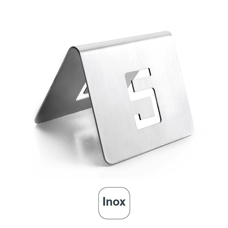 Pack de 12 números de 6x5 cm cada um, fabricados em aço inoxidável de alta qualidade, ideais para identificar mesas em salões, bares e restaurantes.