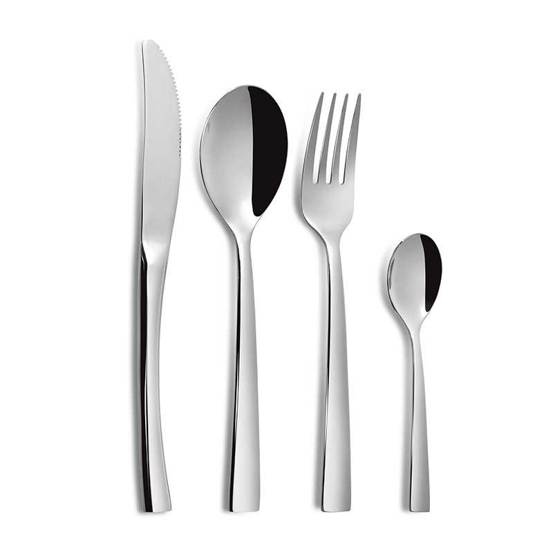 Estojo de 24 talheres Comas Série Madrid fabricados em aço inoxidável, 18% de cromo, níquel livre e 3 mm de espessura.